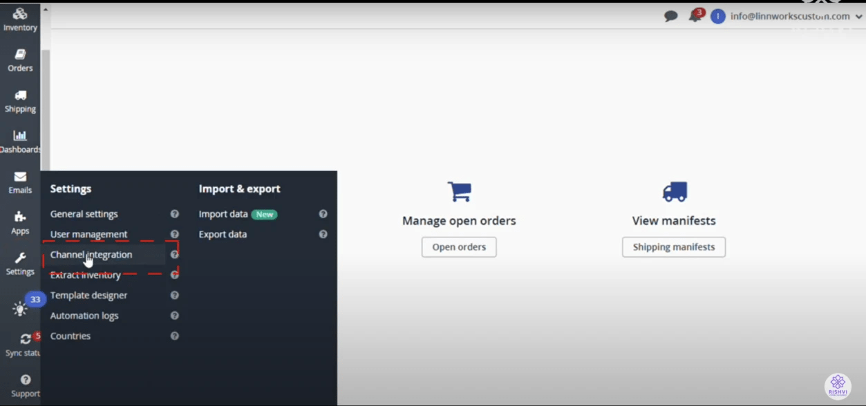 Step 1 : On linnworks go to settings
