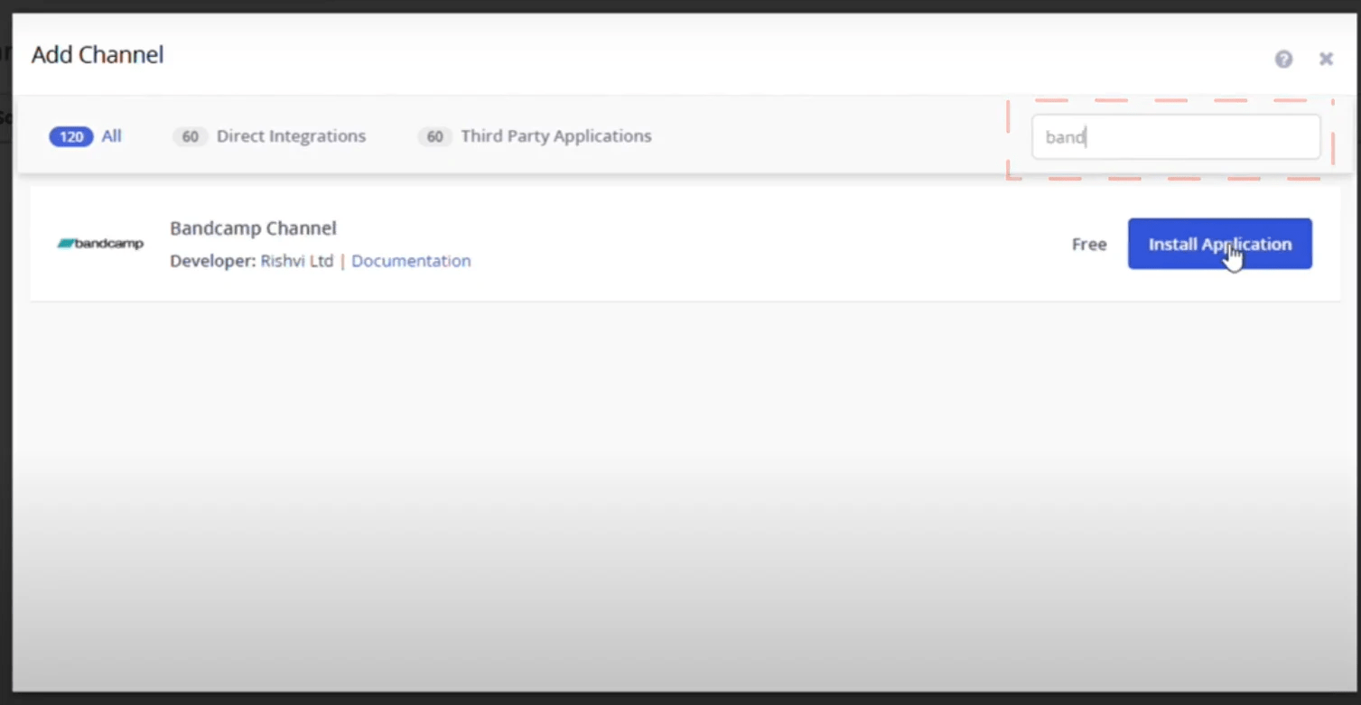 Step 4 : Search for Bandcamp channel here > click on Install Application