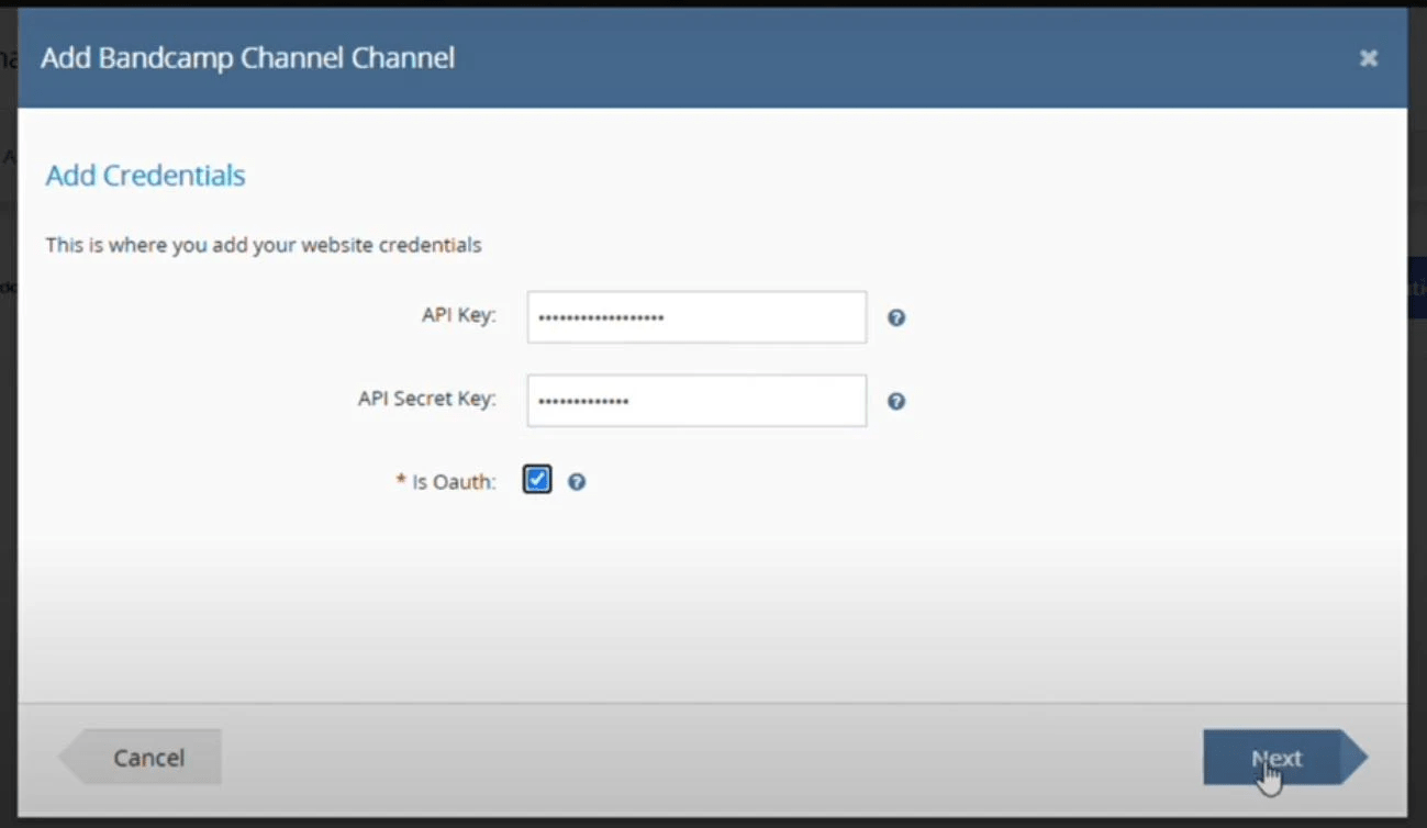 Step 7 : Here Provide API KEY and API Secret Key and Check on Is Oauth > click on Next