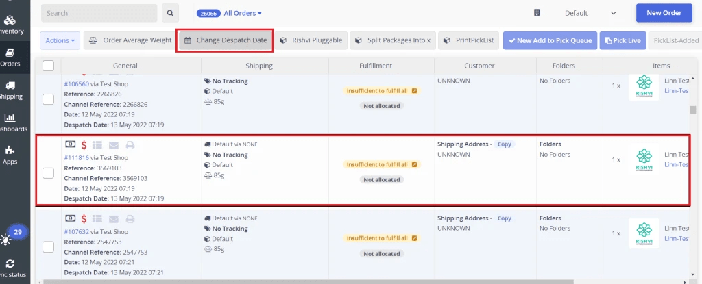The Change Dispatch Date of single or multiple orders in Linnworks streamlines order management by allowing users to select one or multiple orders and easily adjust the dispatch date. This automation simplifies the process of rescheduling orders, improving efficiency in managing order fulfilment timelines.