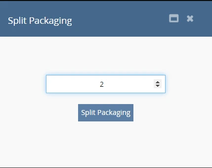 Step 3 : Click the button, enter the number of packages required, and click Split Packaging.