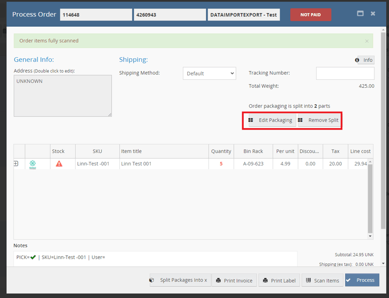 Step 6 : If you need to remove or edit the split, you can do it from the same Process Order screen by using the Edit Packaging or the Remove Split buttons.