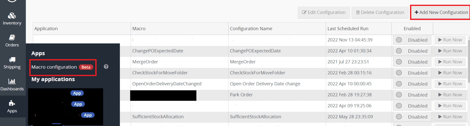 Step 1 : Go to Apps > Macro Configuration and click + Add new configuration.